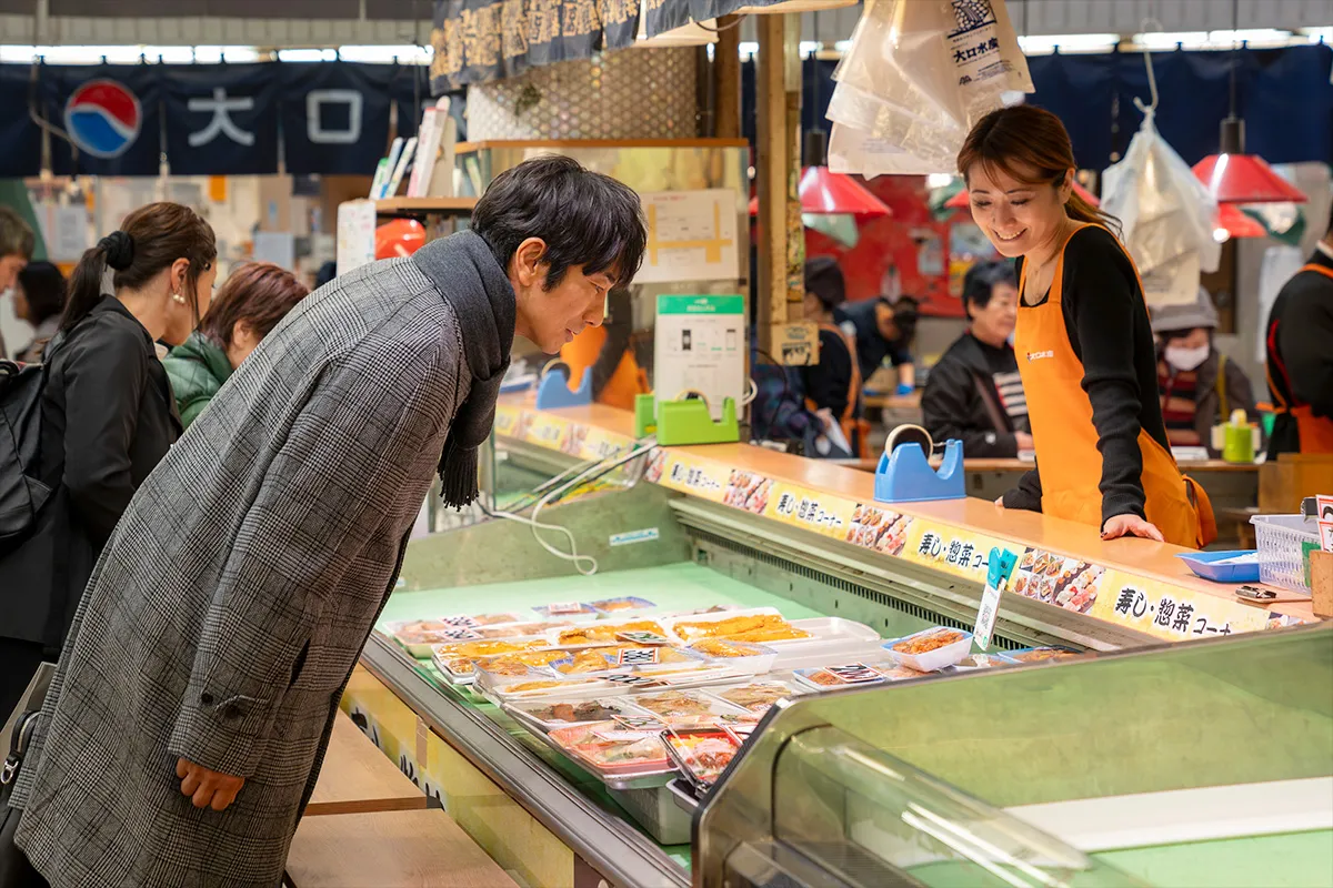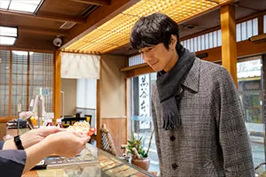 あらすじ #12金沢・おでん編 前田利家とまつ。飲めるのは内助の功があってこそ 居酒屋新幹線に妻の監査が入り憂鬱な高宮進。ここで折れてはいけないと、景気づけに前田利家像に立ち寄ってから仕込みに向かう。近江町市場では、魚屋でのどぐろの塩焼き、酒屋でクラフトビールと純米酒を購入。メインは地元の人に愛され一年中楽しめる金沢おでん。色とりどりの具材が煮えていて出汁の香りが食欲をそそる。そして、かぶらの間に鰤を挟み込み糀で漬け込んだ、石川の郷土料理・かぶら寿しを仕入れたら、さあ開店だ! ~ お品書き ~ 奥能登ビール ピルスナー、金城かぶら寿し、のどぐろの塩焼き、加賀鶴「純米酒 上撰」、金澤おでん/牛すじ煮込み、金箔七味
